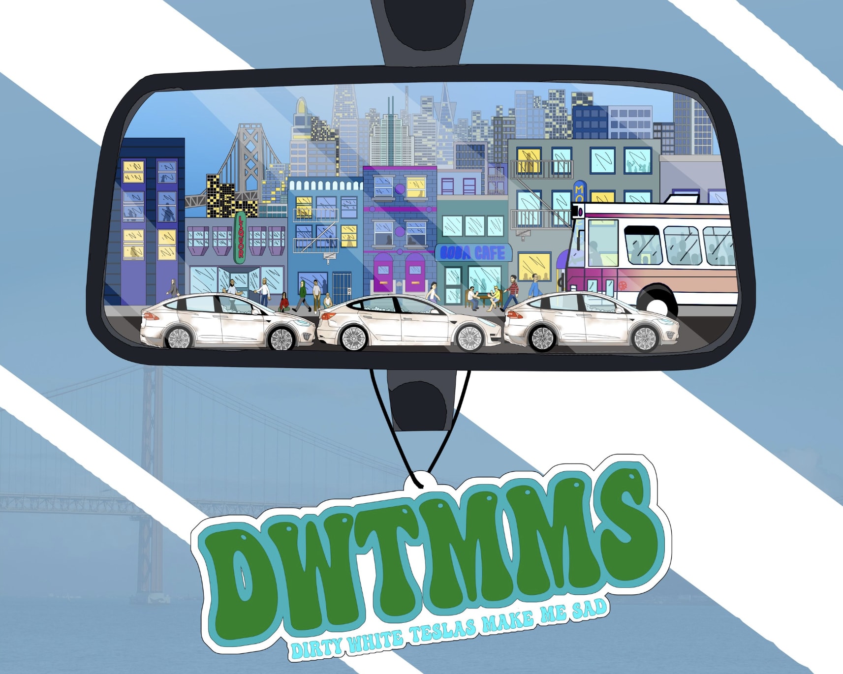 Grounding us in the story is the character nicknamed Sloosh, a 29-year-old queer AfroLatina born and raised in San Francisco. She still lives with her mother, and aside from feeling the millennial shame of that, she’s also unsure of where to go in her life. Dirty White Teslas become the ultimate symbolic insult to those not part of the wealthy scene- a symbol of success not even sufficiently cared for by their oblivious owners. Dirty White Teslas Make Me Sad explores millennial manifestations of faith. In Dirty White Teslas Make Me Sad the protagonists’ quest is revealed for what it truly is- a false justification for experimental self-medication in the face of despair. Her future is made even more impossible by the constant changing of the only place she’s ever known, her home of San Francisco. In an always-evolving world between traditional values and cutting edge technology, social values, and access to an easy life, the main character struggles to survive the search for her identity.